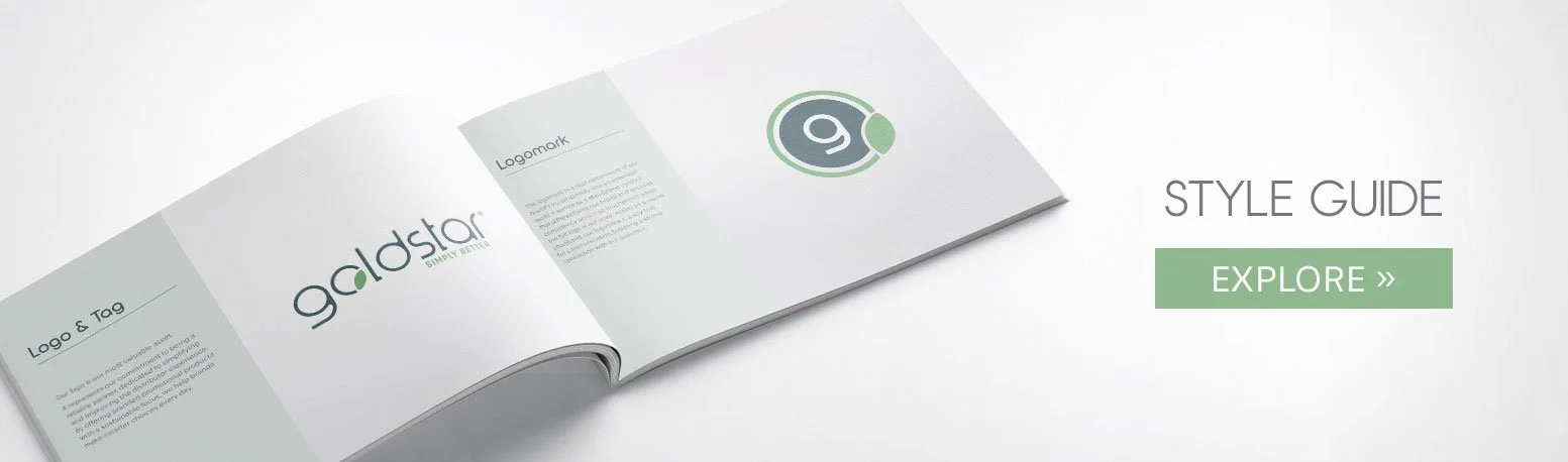 With that direction in mind, my team collaborated to develop a refreshed visual identity—including a new logo and logo mark, brand colors, typography, and an updated visual language—that reflects Goldstar’s commitment to the planet and clearly communicates this mission across the industry.